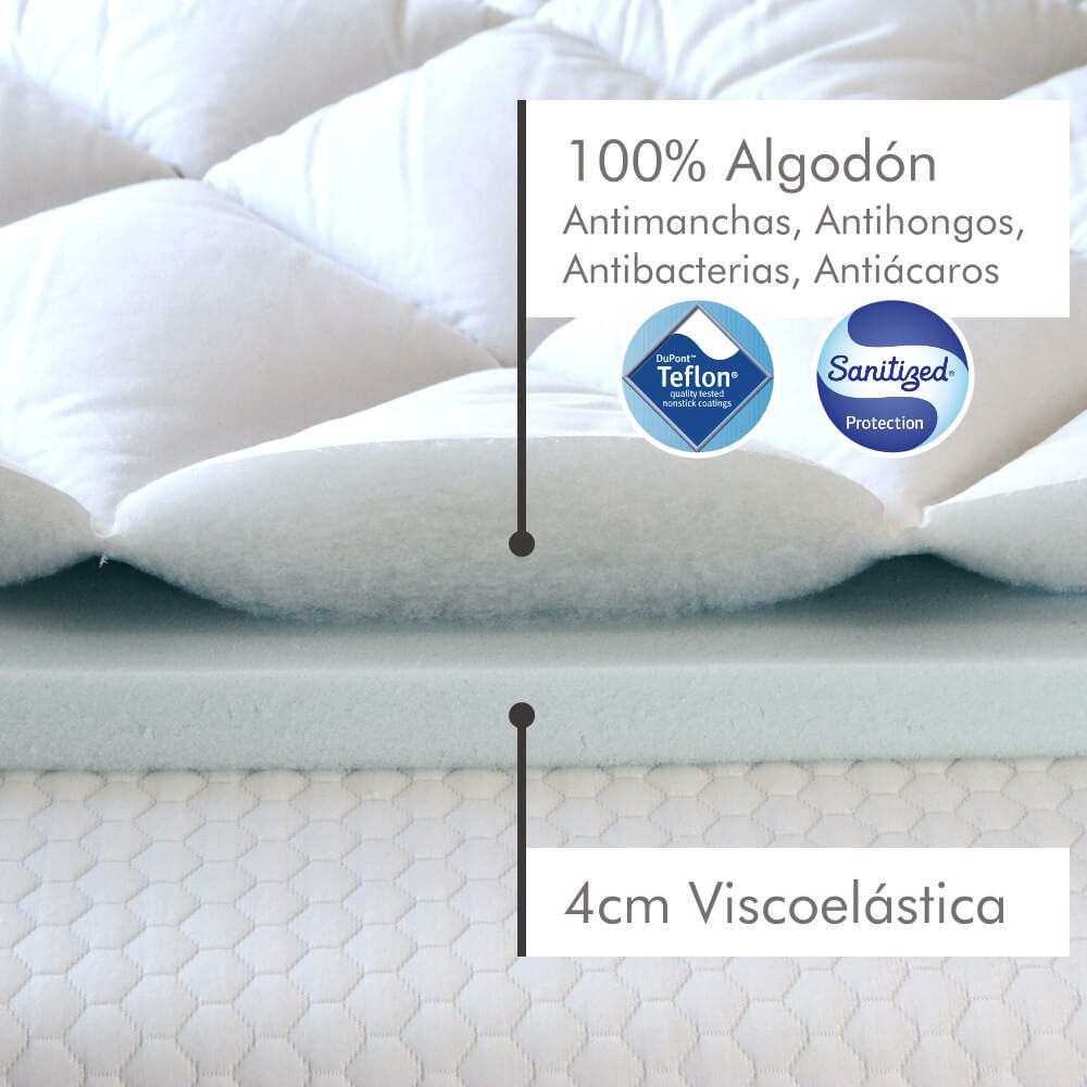 El Topper junto con la blue memory foam, alivian la presión y absorben los movimientos de una forma más eficiente que otras espumas.